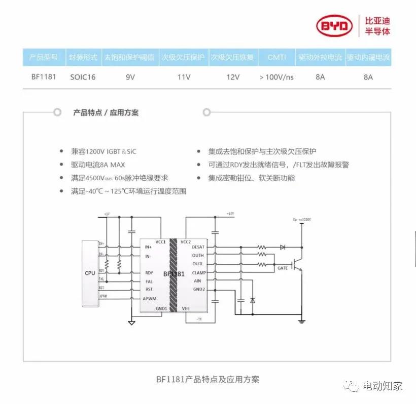 來自電動(dòng)知家消息,12月14日,比亞迪半導(dǎo)體在先前研發(fā)成果的基礎(chǔ)上,成功自主研制并量產(chǎn)1200V功率器件驅(qū)動(dòng)芯片BF1181,今年12月大規(guī)模生產(chǎn)并向各大廠商供貨。