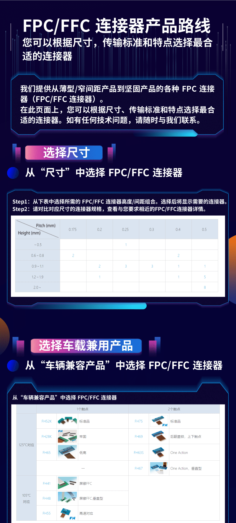 我們提供從薄型/窄間距產(chǎn)品到堅固產(chǎn)品的各種 FPC 連接器(FPC/FFC連接器)。