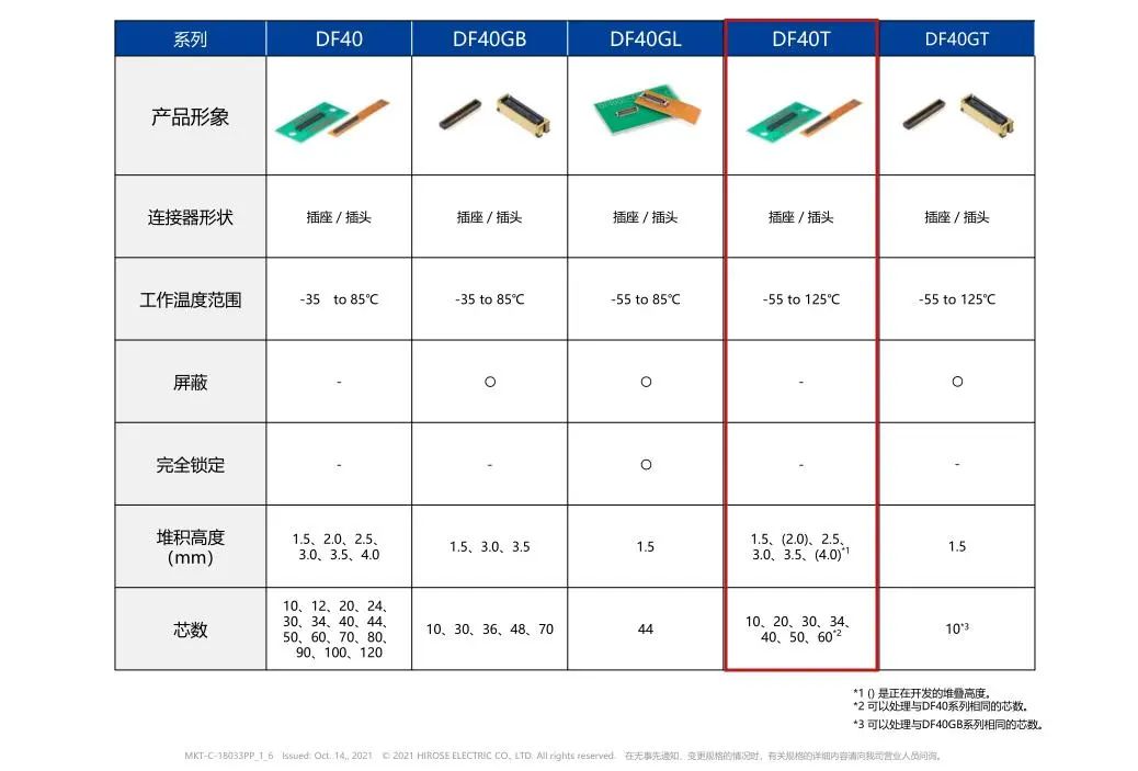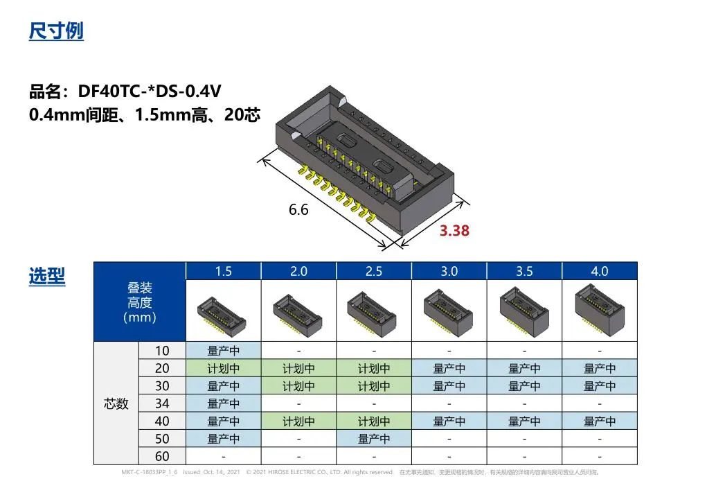 01 DF40系列 選型? 02 尺寸&選型 ? 03 車載應(yīng)用使用事例 ? 04 連接示意圖 ? 05 支持PCI Express 4.0 (16Gbps) 傳輸 ? 06 檢查用連接器 ? 07 推薦基板圖案 ? 08 規(guī)格 ? 如果應(yīng)用需要高度可靠性,例如汽車,請(qǐng)聯(lián)系公司代表以獲取更多信息。
